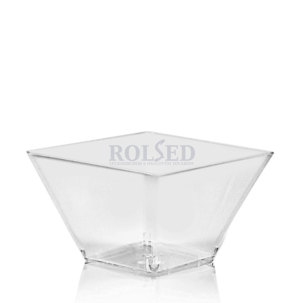 Fingerfood vanička hranatá na jednohubky a dezerty, svojím elegantným čírym vzhľadom sa hodí na každý stôl s cateringom a občerstvením. Objem vaničky je 500 ml, rozmery sú 11x11x7 cm. Jedno balenie obsahuje 25 ks.
